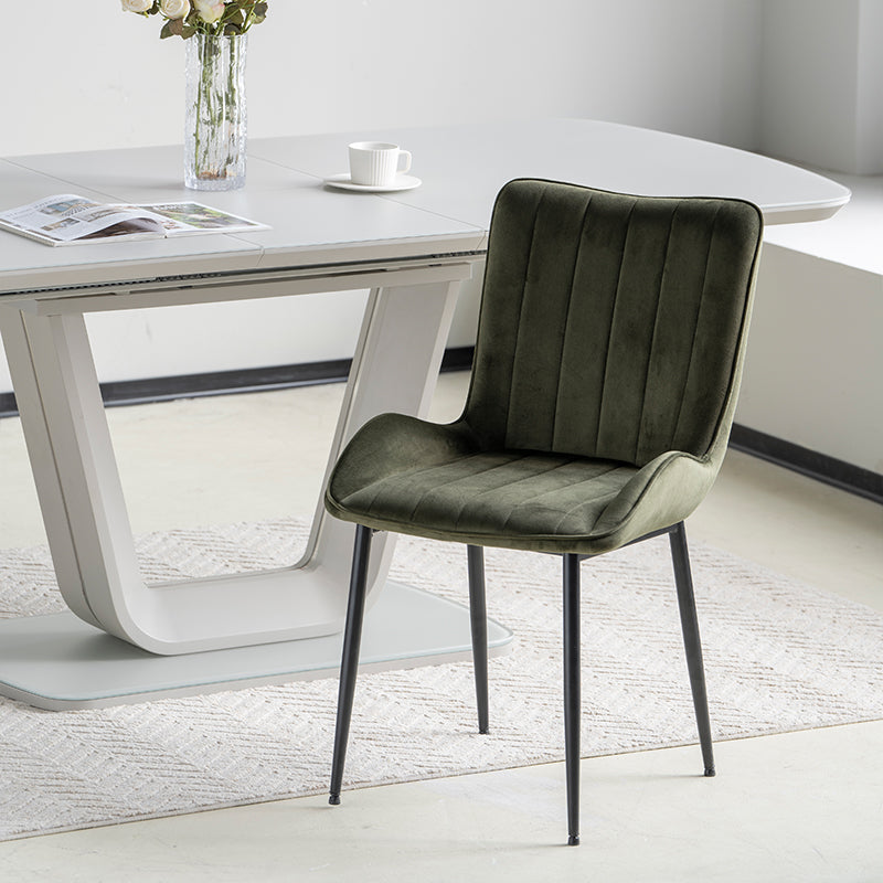 - Leicht zu reinigen: Viele Samtstühle sind schmutzabweisend behandelt oder lassen sich leicht mit einem feuchten Tuch reinigen, was sie zu einer praktischen Wahl für Esszimmer macht.