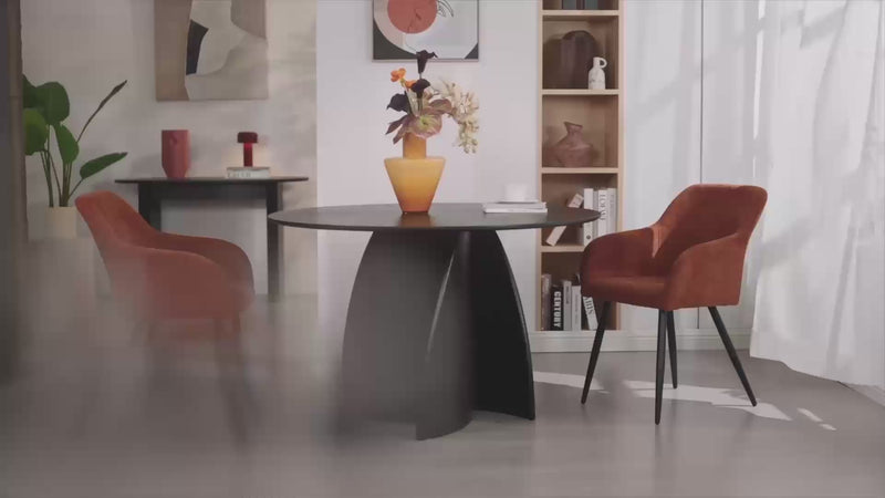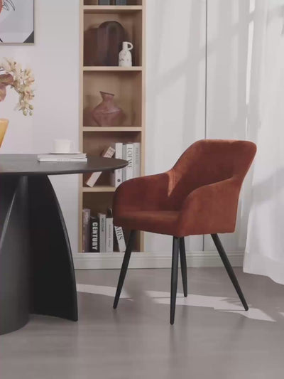 Hergestellt aus strapazierfähigem Kunstleder, lassen sich Verschmutzungen und Flecken beim Frazer mühelos entfernen – einfach abwischen, und schon ist der Stuhl wie neu. Die schwarzen Metallbeine sind pulverbeschichtet für zusätzliche Stabilität, während ihre schräge Form einen Hauch von Eleganz verleiht und diese Stühle einzigartig macht. Lehnen Sie sich zurück und genießen Sie die unterstützenden Armlehnen, die für behagliche Stunden bei langen Abendessen oder Arbeitssitzungen sorgen.