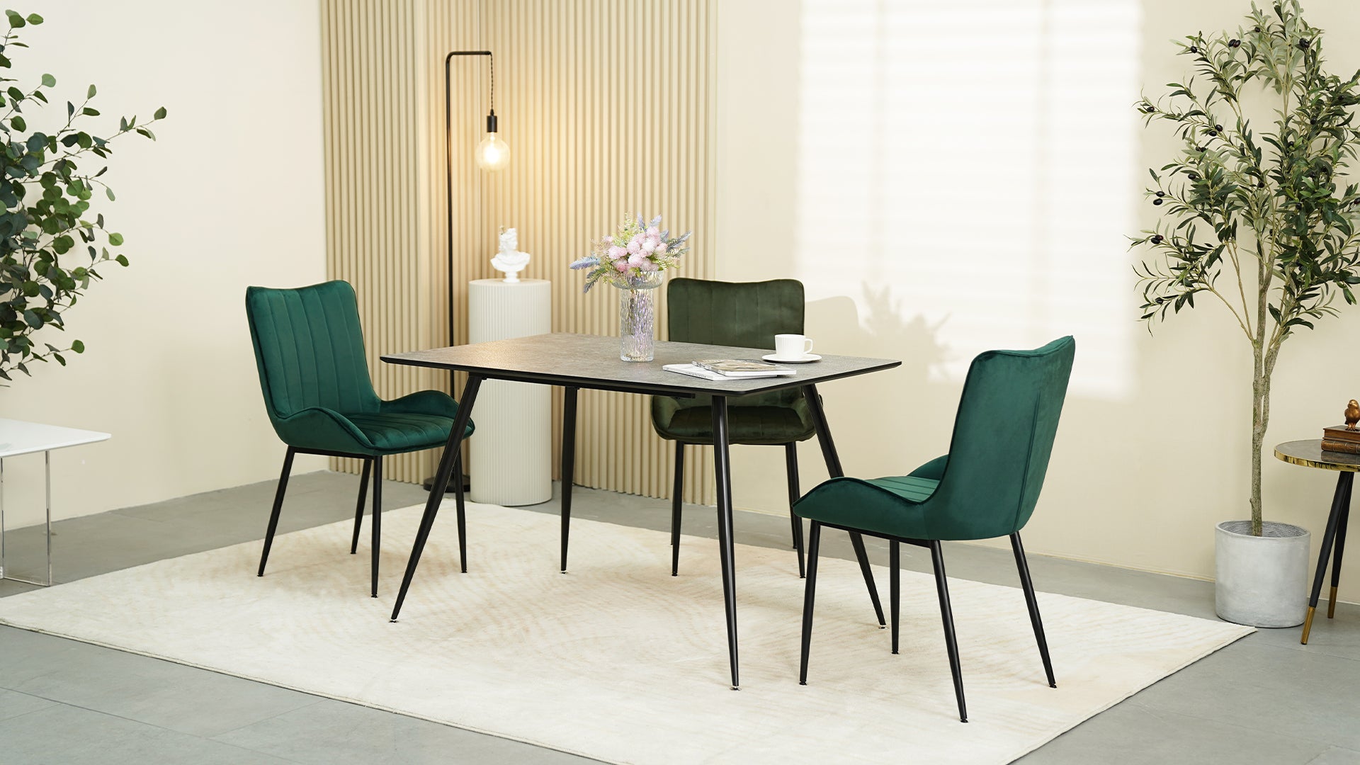 - 【Luxuriöses Samtmaterial】Durch die Verwendung von Samtmaterial fühlt sich der Esszimmerstuhl weich, bequem und luxuriös an und verleiht Ihrem Essbereich ein hochwertiges Aussehen und Gefühl.