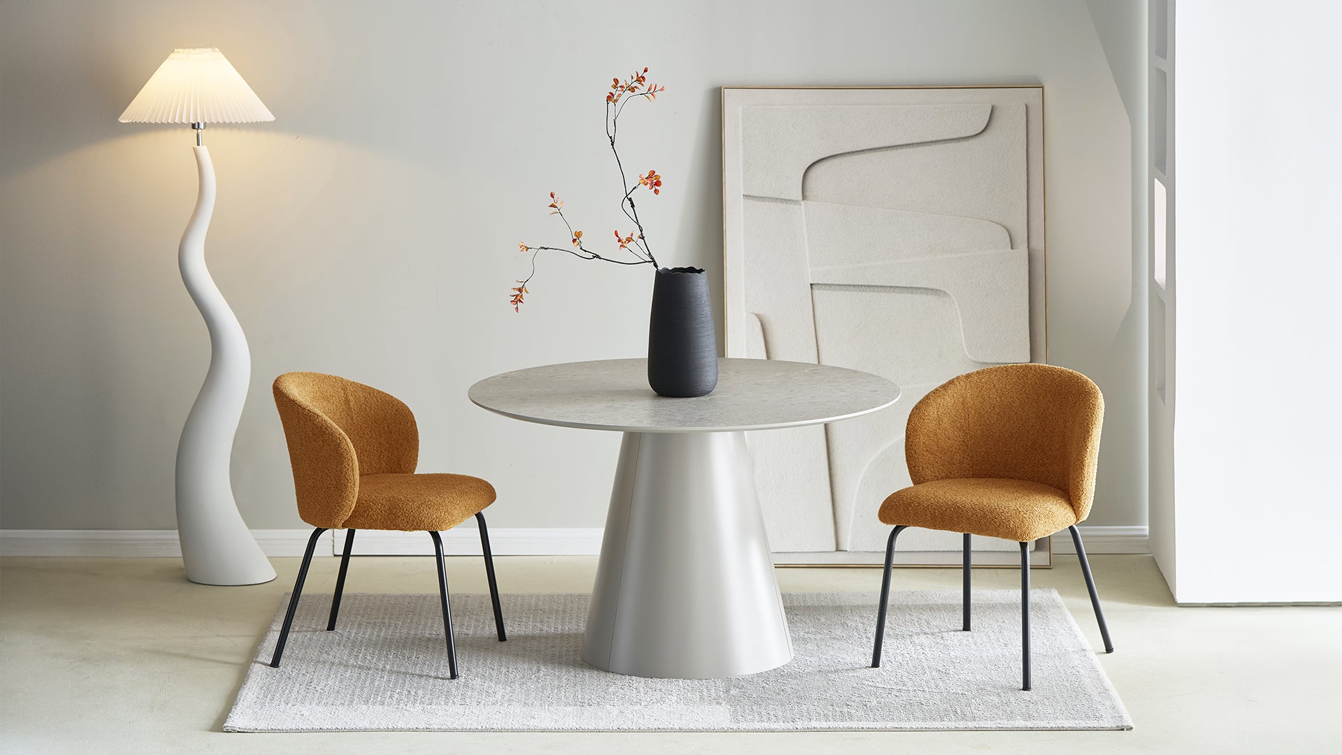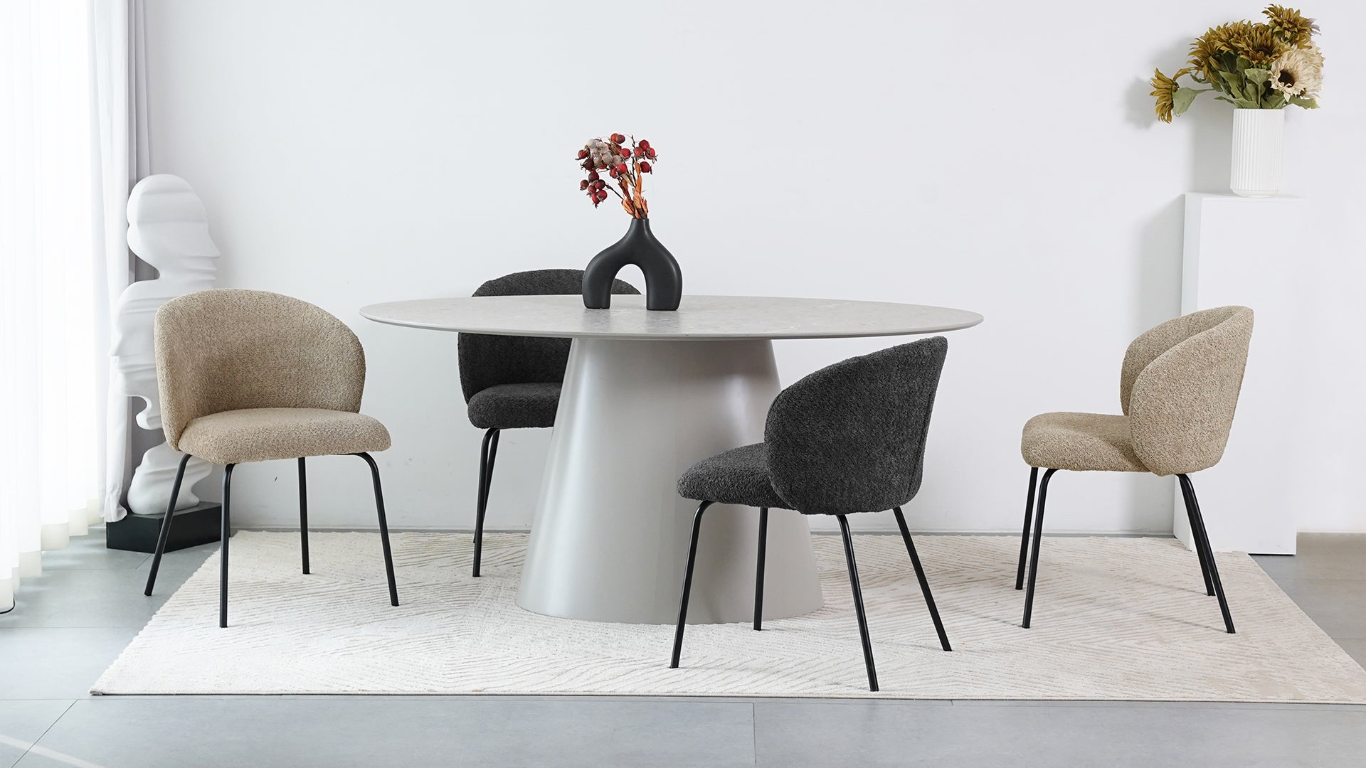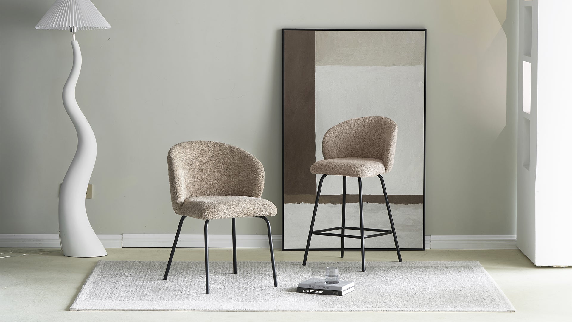 - 【Komfortables Boucle-Gewebe】Die Stühle sind aus Boucle-Gewebe gefertigt und bieten ein komfortables, langlebiges und abriebfestes Sitzerlebnis. Die natürliche Haptik des Stoffes erhöht den Gesamtkomfort.
