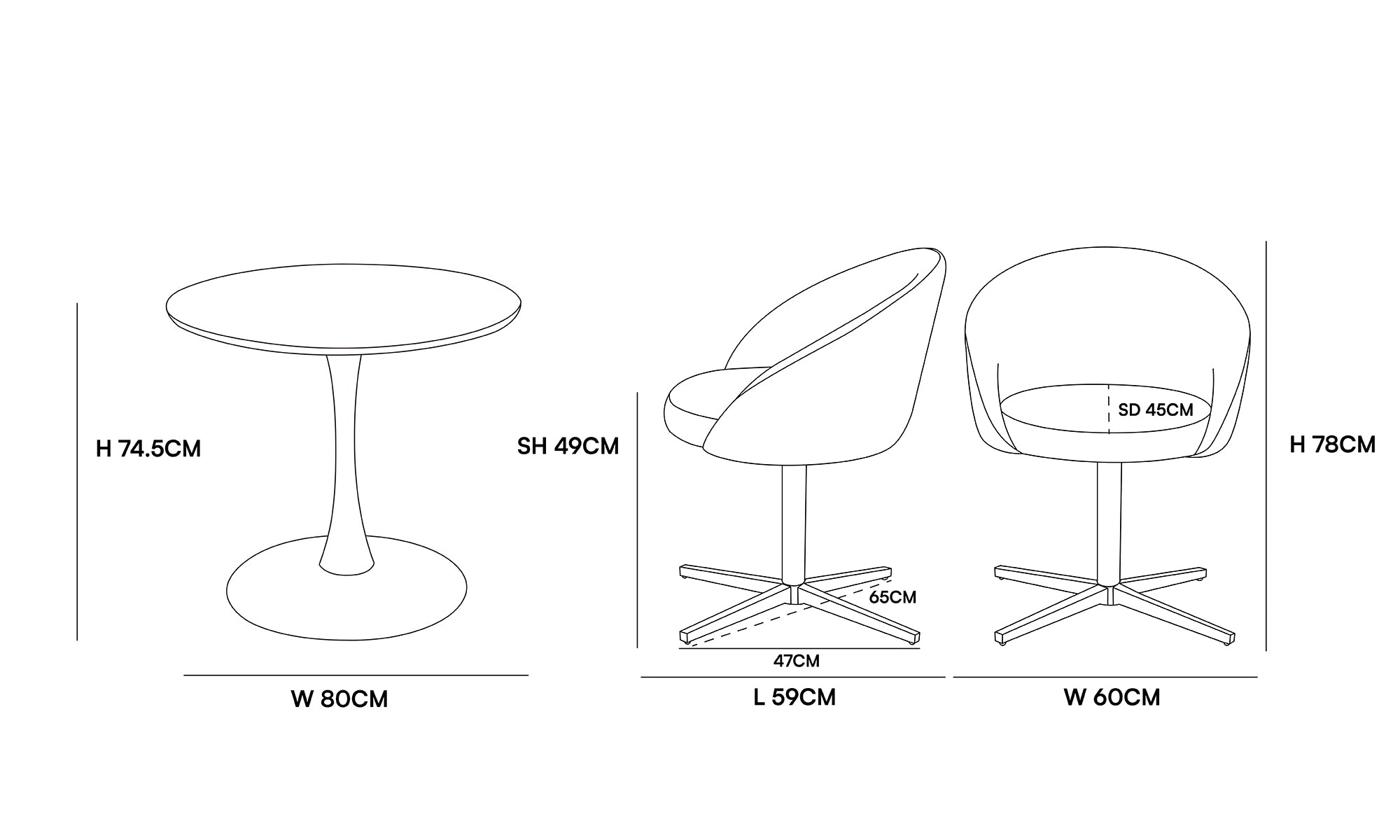 Die mit Leinen gepolsterten Sitze sind um 360 Grad drehbar und verleihen dem Ensemble eine moderne Note. Die dicken Kissen und die eleganten Armlehnen vereinen Komfort und Ästhetik und machen ihn zur perfekten Wahl für ein romantisches Abendessen zu zweit oder eine einfache Mahlzeit zu zweit.