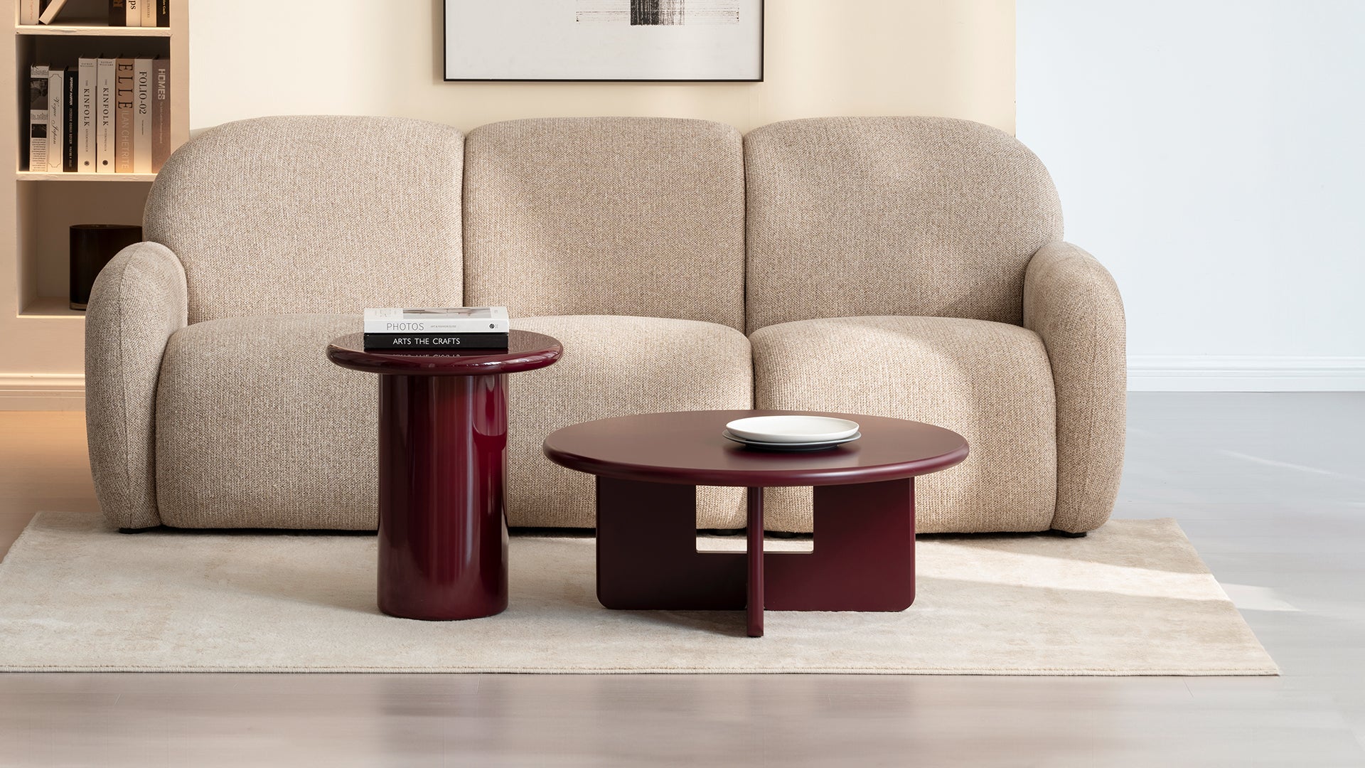 - 【Elegante Ästhetik】Der matte Beistelltisch in Beige/Lila-Rot verleiht dem Raum eine trendige Vitalität und wird zum Blickfang.